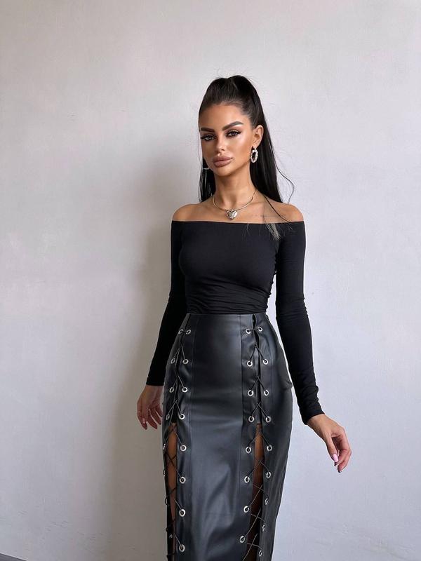 Комплект: топ + спідниця міді ціна комплекту: 1400 грн ціна спідниці: 1200 грн тканина: еко-шкіра, трикотаж розмір: S та М (L + 200 грн)