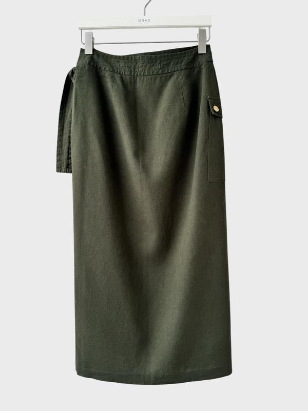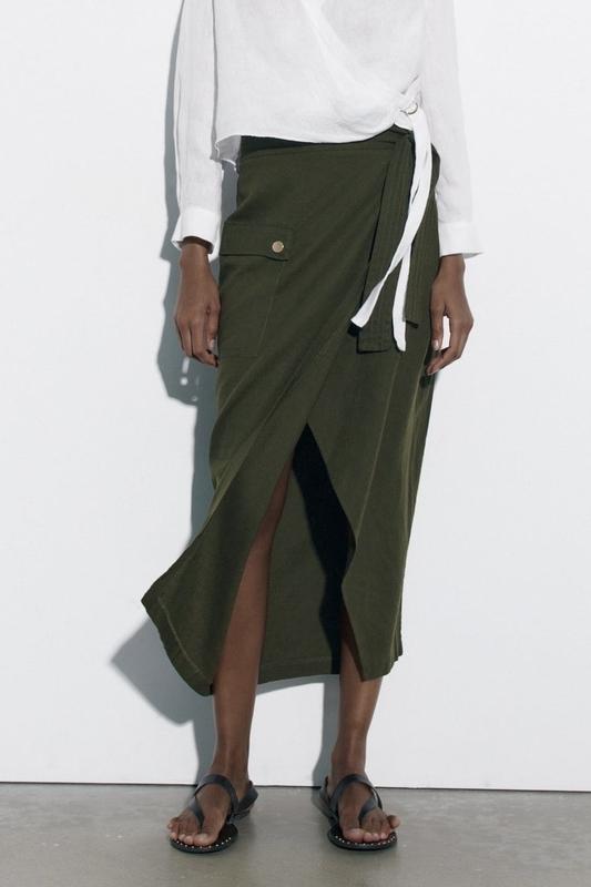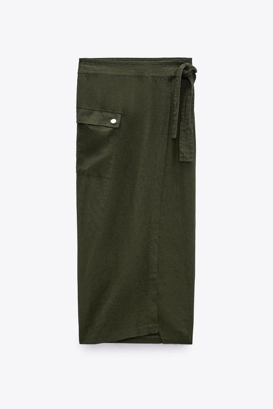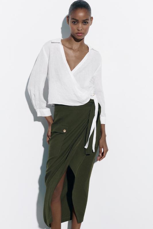 Лляна міді спідниця юбка на запах zara льон віскоза