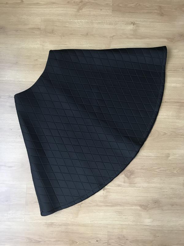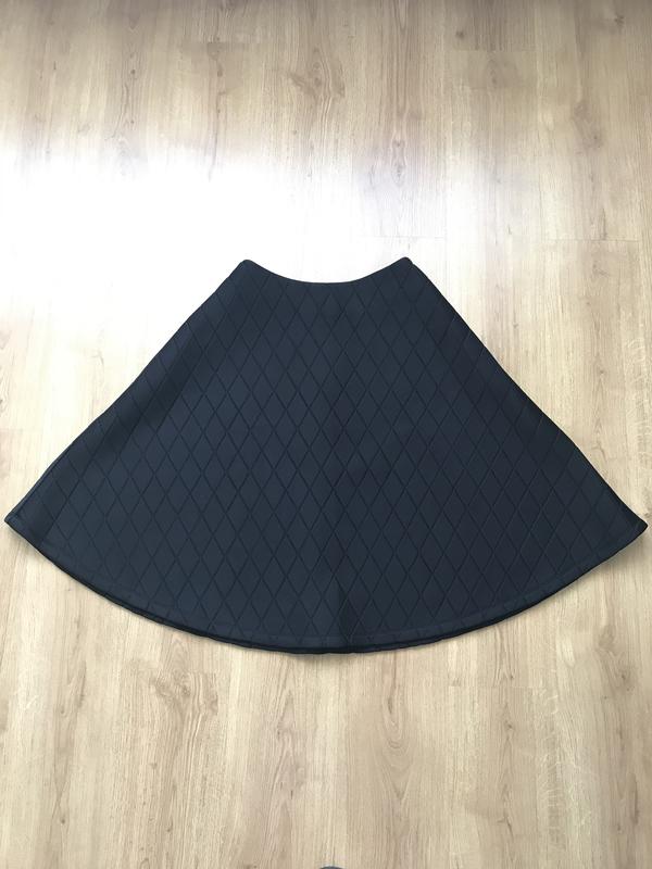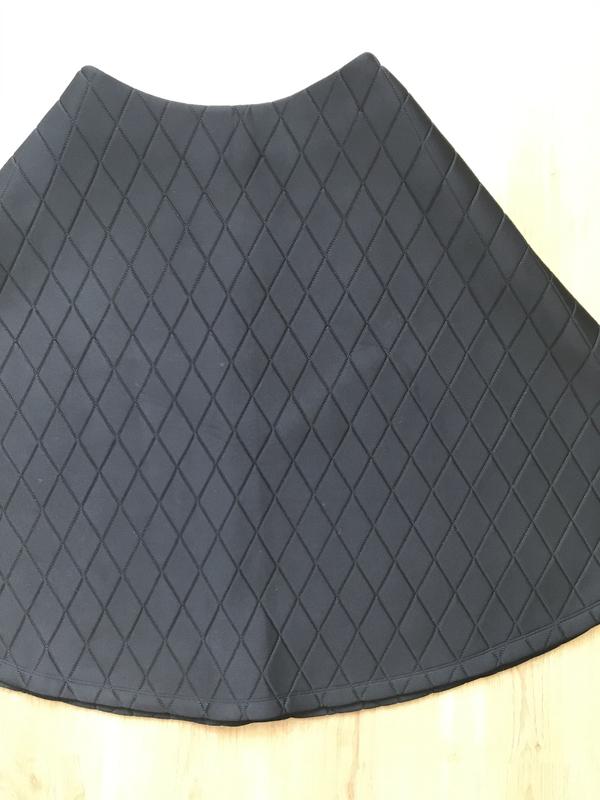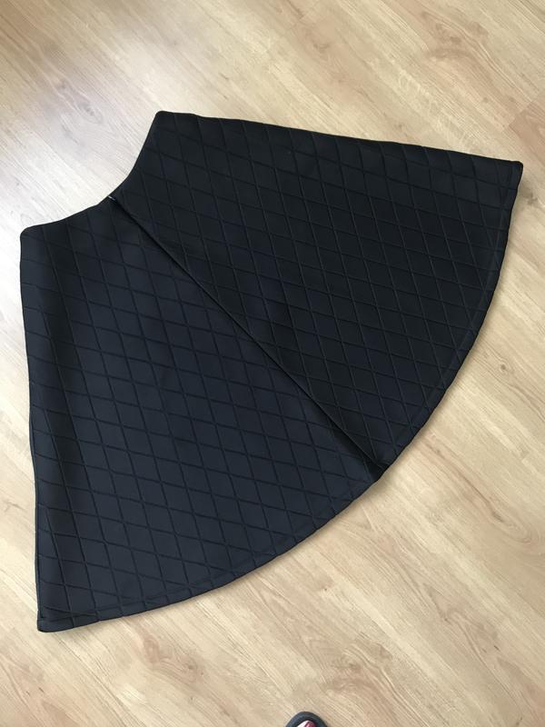 Стильная черная юбка из стеганого неопрена. Размер L. Объем по талии 82 см, объем по низу 262 см, длина 69 см. застежка потайная молния по спинке