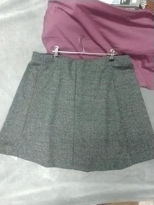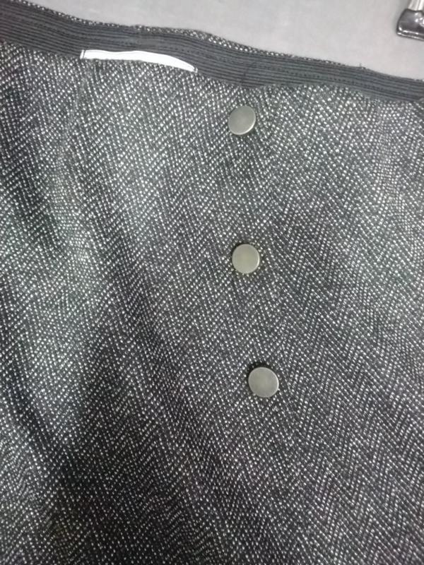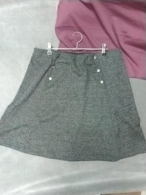 Трикотажна спідничка, рр.40-42, 44-46. Пояс - вшита широка гумка, декорована металевими гудзиками. У розмірі 40-42: ширина пояса 39-42 см, ширина по стегнах 57см, ширина по низу 77,5 см, довжина 45см У розмірі 44-46: ширина поясу 45-50см, ширина по стегнах 60см, ширина по низу 80,5 см, довжина 47см