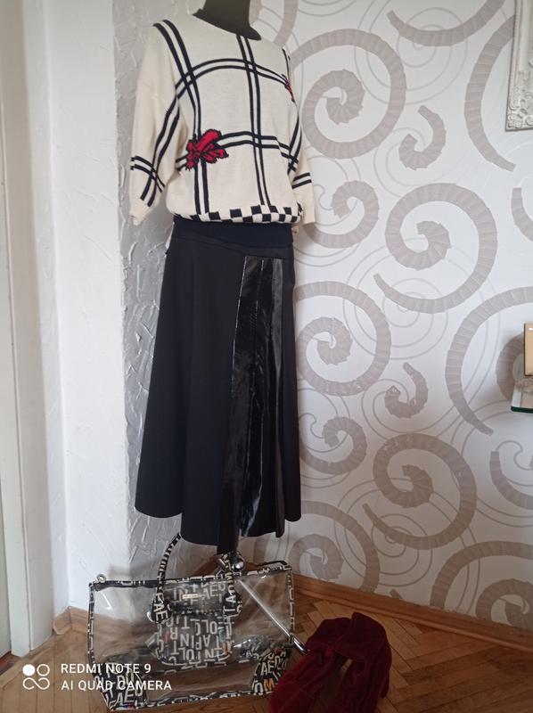 Сама модна спідниця міді сезону 2021 Uniqlo Неопрен + лакова шкіра спереду розріз Нова, з биркою Талія 35см Довжина 75см