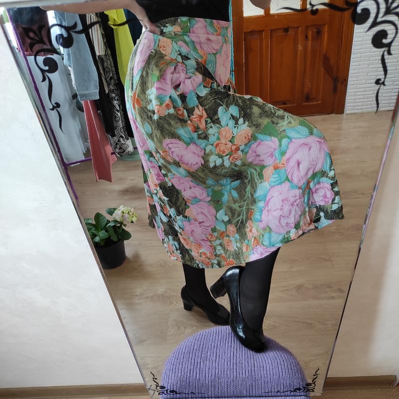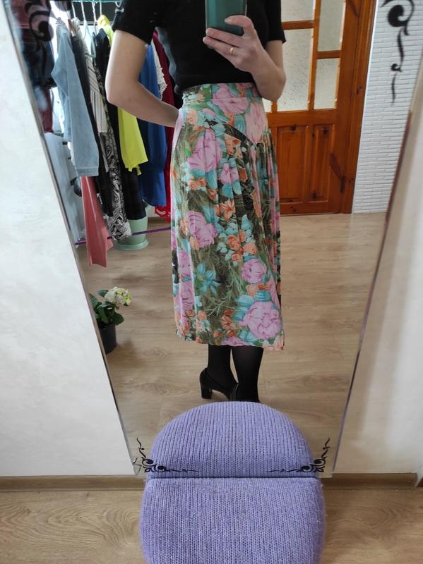 красива вінтажна спідниця дуже гарної якості приблизно 80-х 🔹стан ідеальний 🔹 розмір Л, довжина 78, ПІТ 42(за бажанням можна вшити) такої не знайдете більш ніде💛