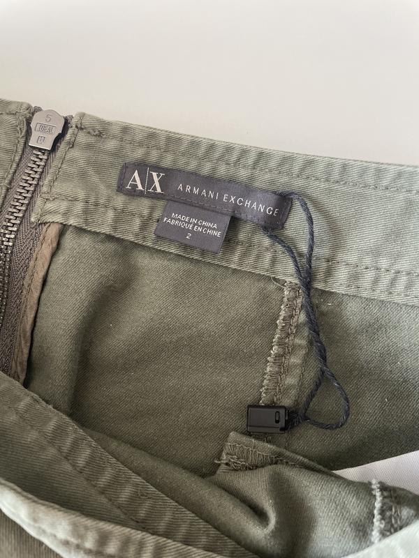 Бомбезна спідниця від Armani Exchange А-силуету.Колір хакіСтан ідеальний Розмір 2 (XS)Довжина 39 см, напівобхват талії 33 см.