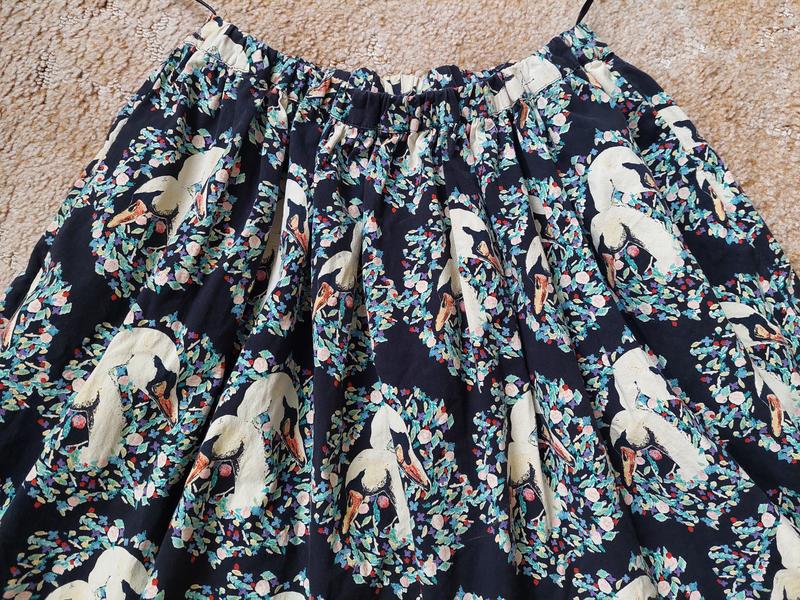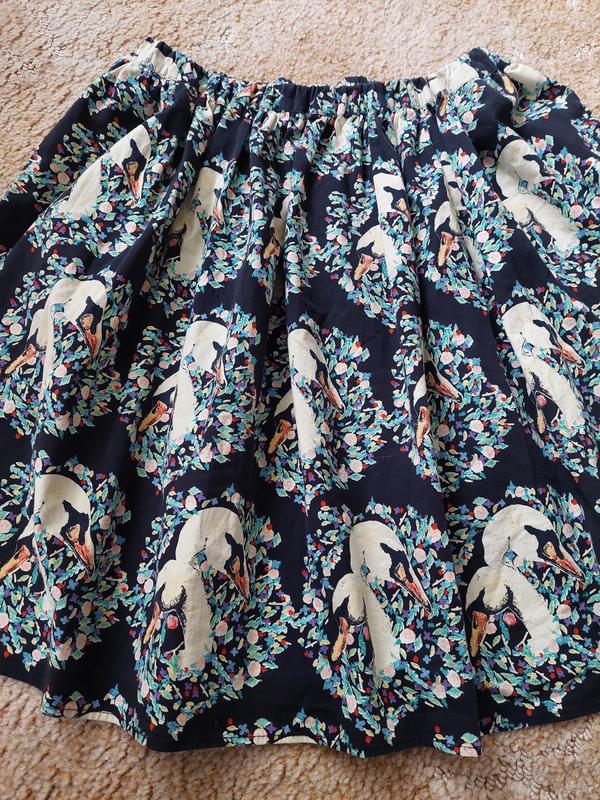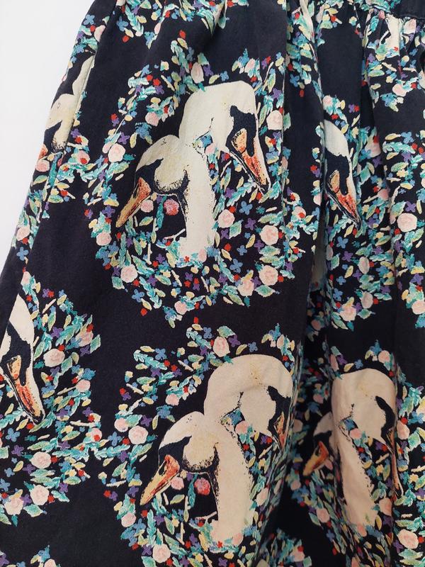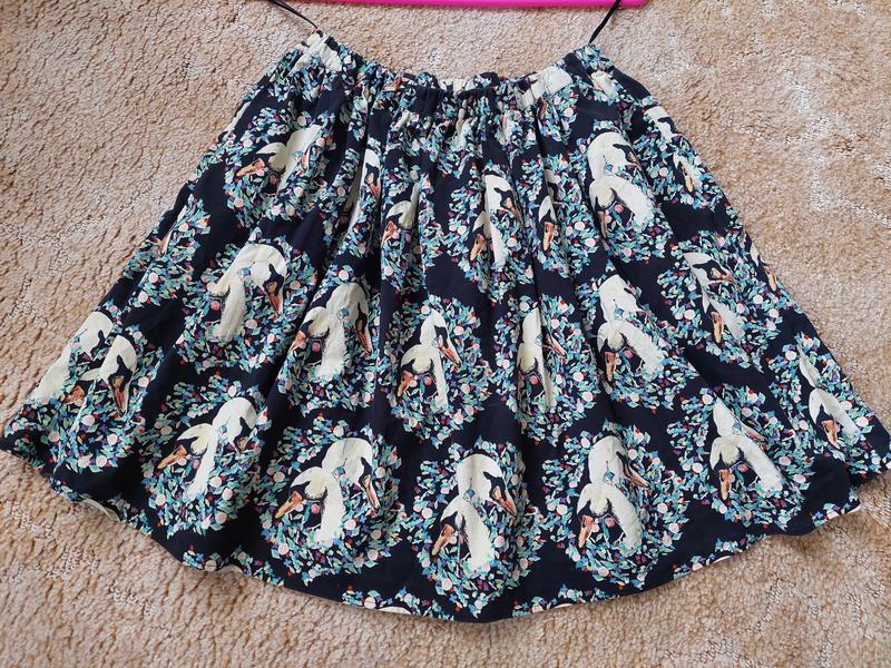 Дуже гарна, легенька, літня міні спідничка із котону в лебедях з карманчиками по боках. Талія повністю на зручній резинці 👍 Заміри: довжина- 44пот- 28, тягнеться на резинці до 46