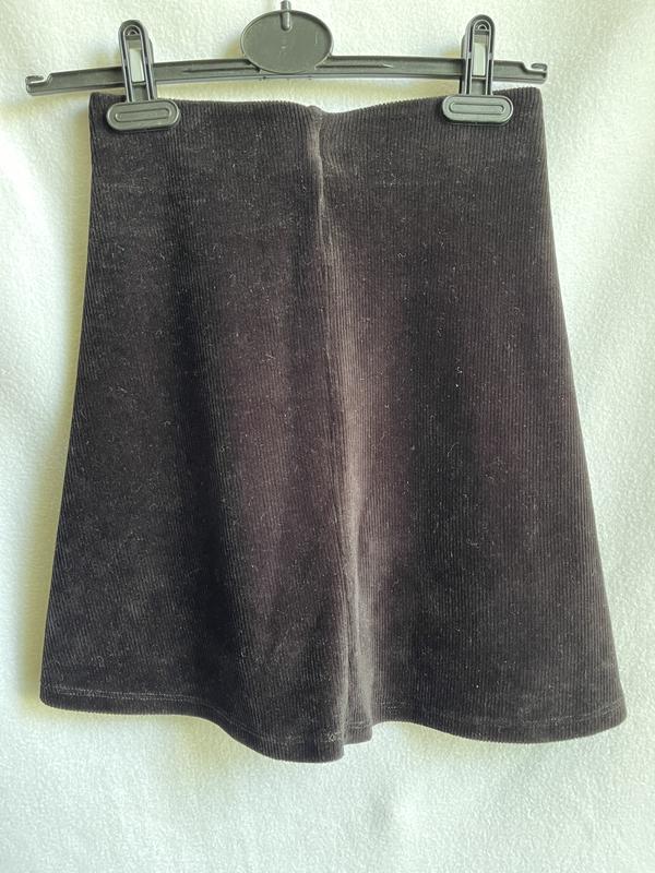 Чудова маленька спідниця ( на жаль фото не передає все як є) з тканини яка нагадує на дотик велюровий вельвет) Стан відмінний. Колір чорний . Тканина м’яка. Гарно лягаю по фігурі. Будете носить із задоволенням. Розмір XS