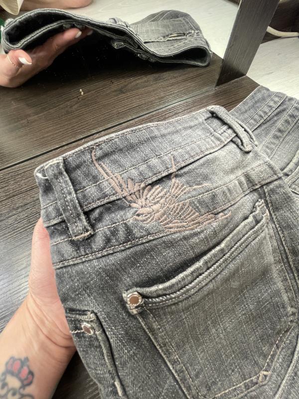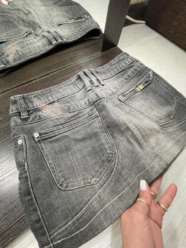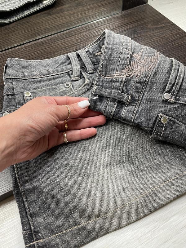 EU 34. Колір: сірий градієнт . Ззаду вишито нитками . На худеньку , мініатюрну дівчину . ПОТ: 38, ПОБ: 45, Довжина : 30, Посадка (блискавка) 11,5. Одягнена пару разів, стан ідеальний, видно на фото .