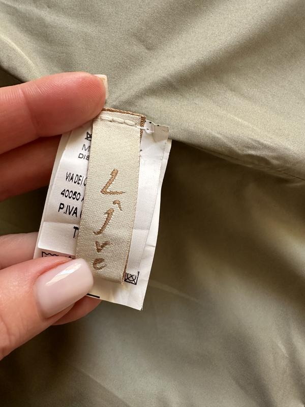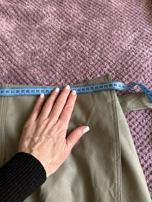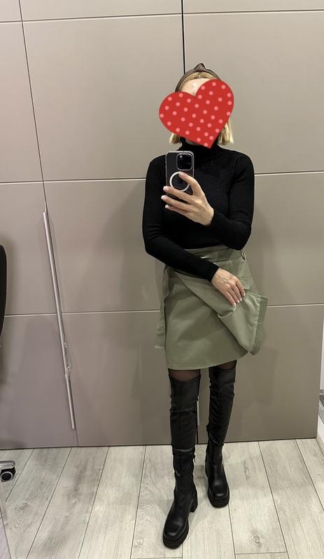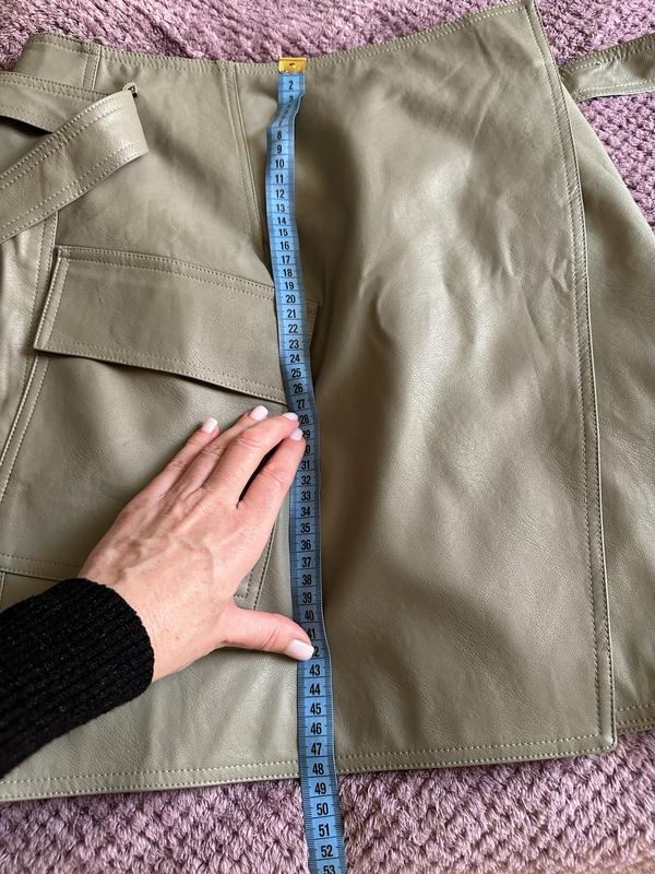 Дуже гарна спідниця на запах, на таліі два ґудзики і пояс, колір олива, в ідеальному стані! Мій зріст 163, щоб зрозуміти краще довжину! Розмір М, Італія