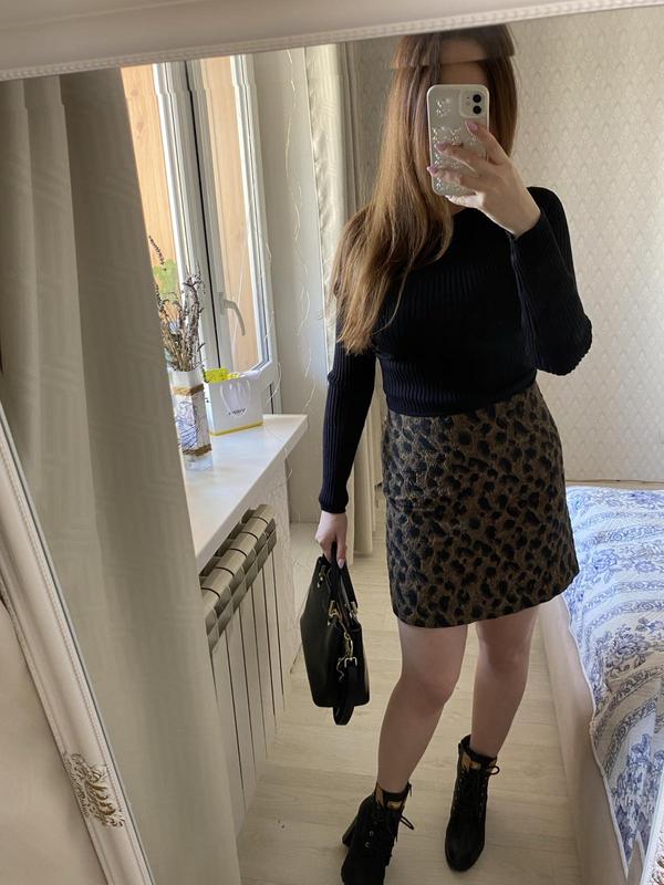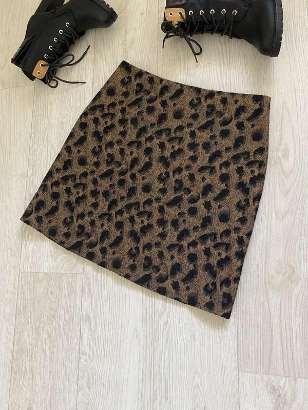 Розкішна фактурна міні спідниця Warehouse коричневого кольору в принт, є підкладка.