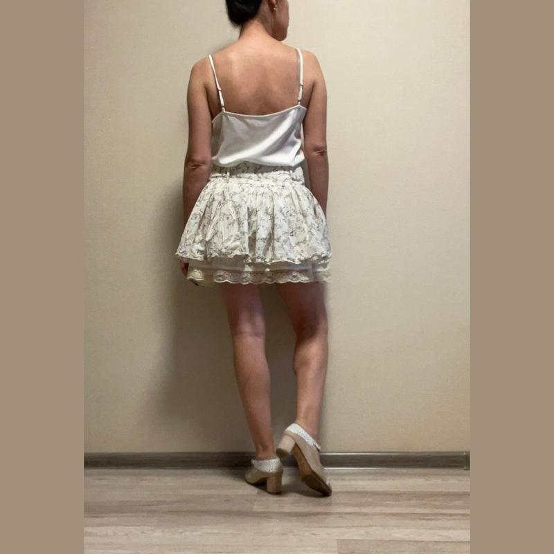 Спідниця із тончайшей бавовни, нижній волан оторочен мереживом, нова, розмір 44, зліва йде блискавка , кольор- вершковий із дрібним квітковим принтомНОТ-39довжина -42