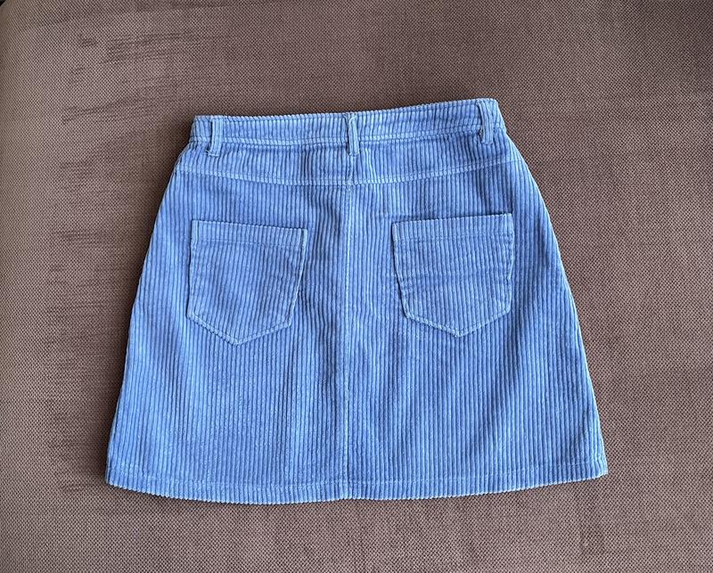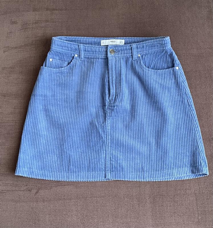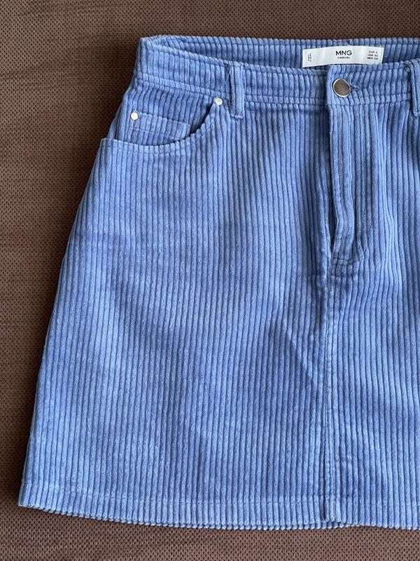 Спідниця юбка коротка манго mango блакитна в рубчик типу вельветова джинсова