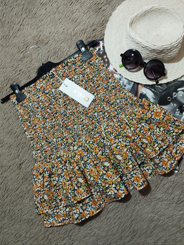 Нова, з біркою. Гарна квіткова спідниця-резинка з воланами. Тканина легка, резинка тягнеться. Виглядає супер 😍 Розмір 10/38/М, але дивіться по замірам Заміри (напівобхват): Талія 32(тягнеться до 46) Стегна 38(тягнеться до 50) Довжина 46