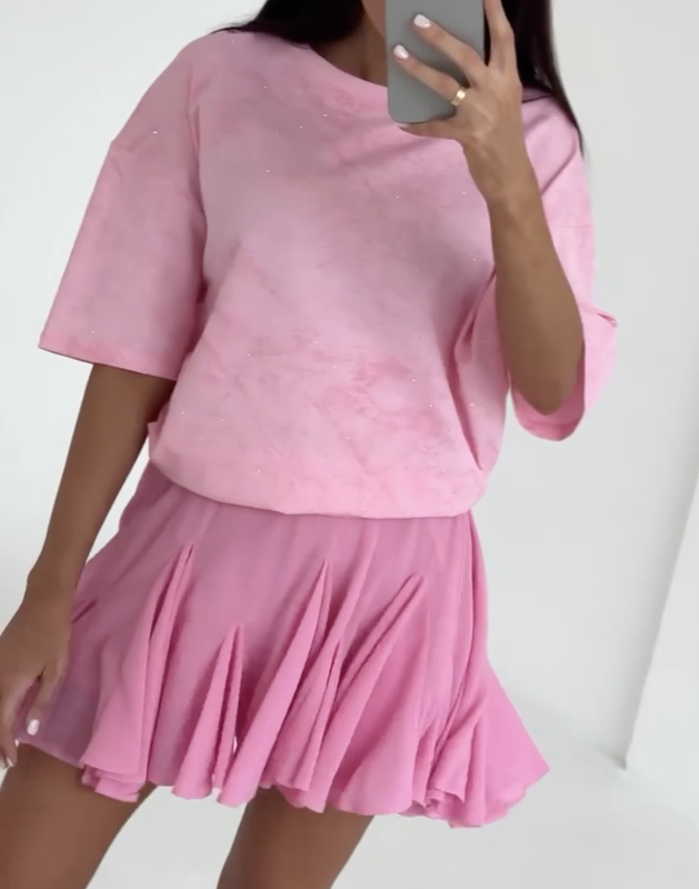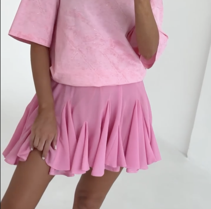 Щільна тканина в 2 шари, дуже пишна і обʼємна, можна комбінувати під все 🩷 Універсальна річ - яка точно має бути в твоєму гардеробі 🥰