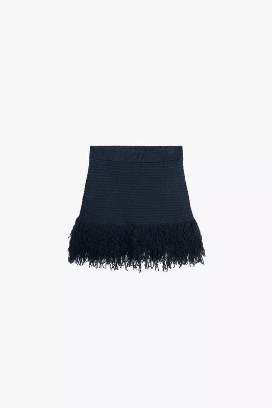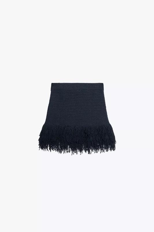 Мініспідниця з високою посадкою і еластичним поясом. Бахрома по краю.ТЕМНО-СИНІЙ/БЛАКИТНИЙ | 4331/005/401