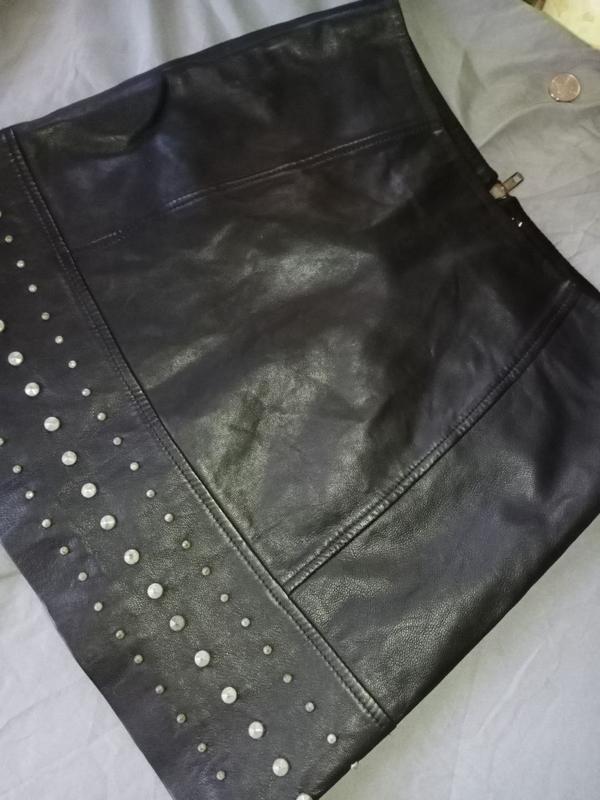 Спідниця міні юбка 100% натуральна шкіра topshop чорна з металевими клепками