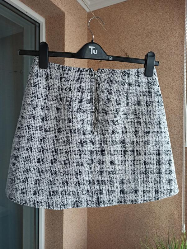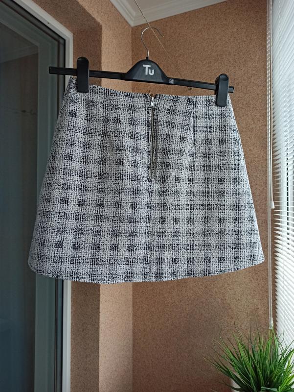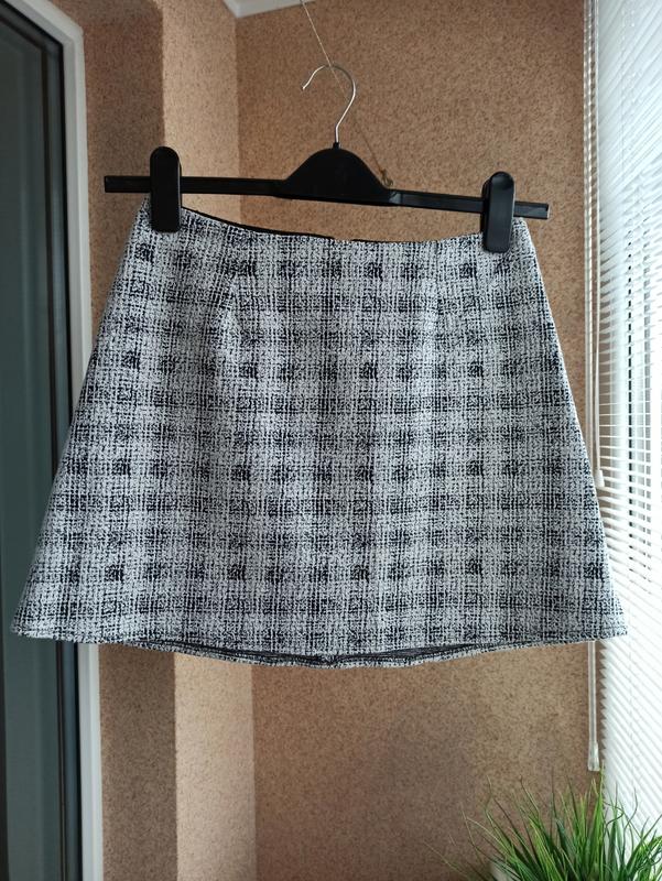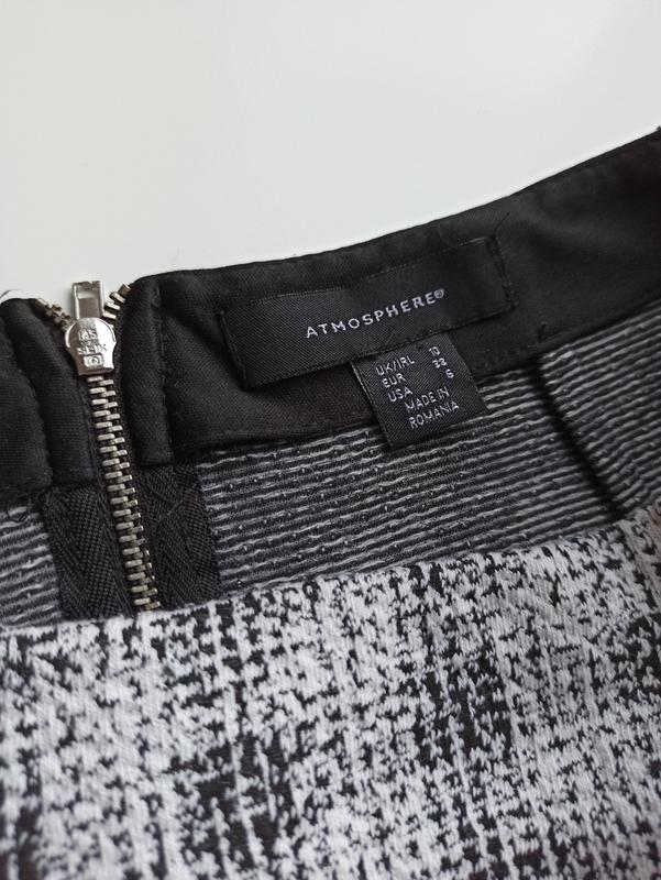 Без підкладки. Вказаний розмір 10, але підійде і на розмір 8. Внутрішня бирка зі складом зрізана. Напівобхват талії - 34-35 см, Напівобхват стегон - 46 см + тягнеться, Напівобхват по низу спідниці - 57 см, Довжина спідниці - 38 см))