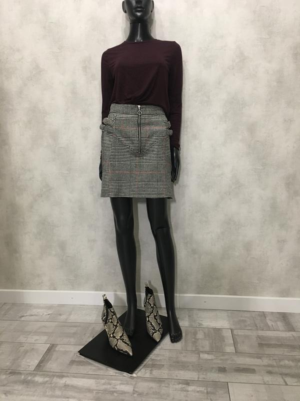 Мега крута трендова спідничка з замком колечком в переди від Topshop, розмір 10 дл. 43 див., п. о. т. 38,5 див., п. о. б. 53 див.