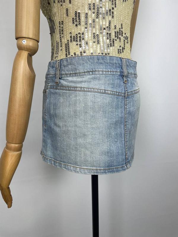 Джинсова міні спідниця у стилі 2000их з потертостями в зірками бавовняна 100% хлопок джинсовая мини юбка голубая xs s