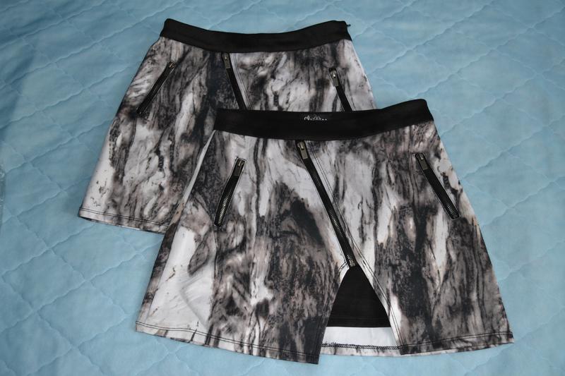 Неопренова міні-спідниця ,колір сірий з розводами,імітація запаху.Дуже стильна спідниця,идиально сідати по фігурі,не мнеться,виконана з тонкого неопрену,стрейч.В наявності два розмірі XS і S. Стан нові з етикетками. Заміри :розмір - XS піт - 36 див. побіди - 48 см довжина -39 см розмір - S піт - 38 див. побіди - 50 см довжина -39 см
