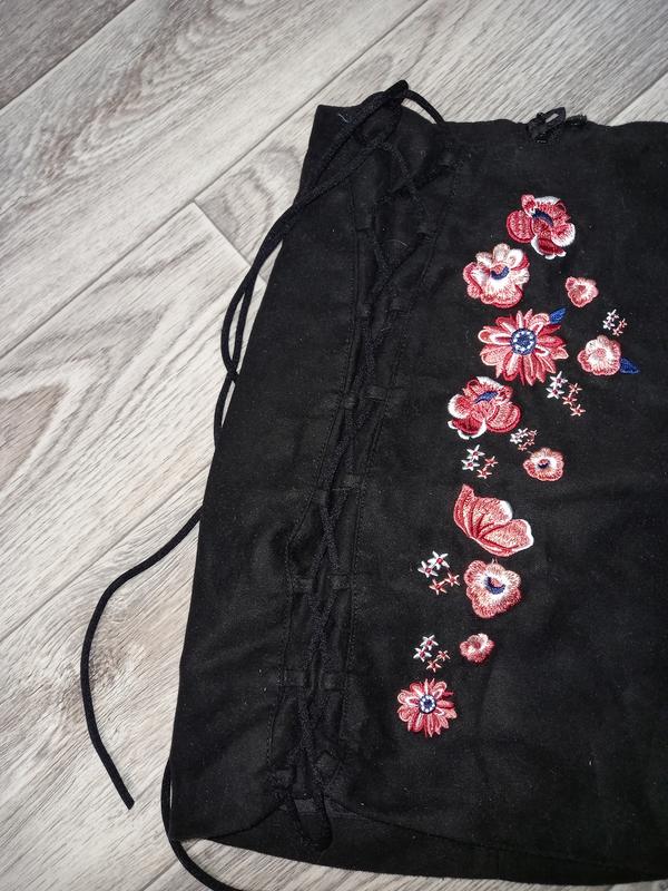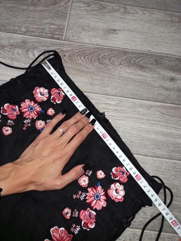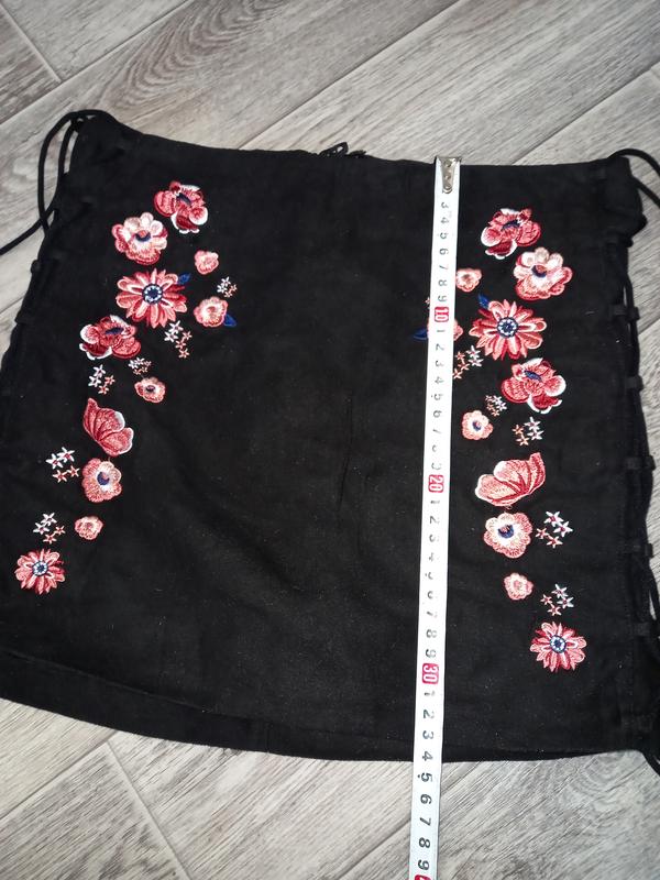 Міні спідниця на шнурівці під замш з вишивкою 🌺