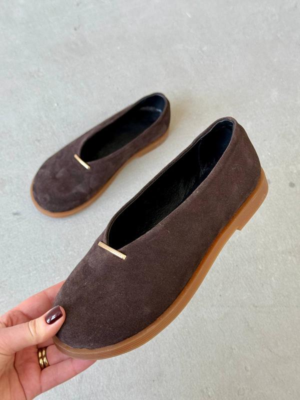 Код 100889 Туфлі-балетки з круглим носком Vik. Натуральна замша. Підошва 1 см. Розмірний ряд : 36-40. Зроблено в Україні. 2590 грн