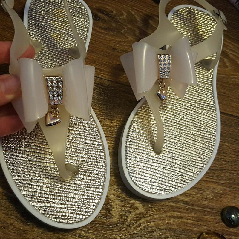 Силіконові босоніжки молочні бантики в наявності 35 і 36 р Розміри: 35 і 36 Ціна: 225 грн Підошва-пінорезина Колір: бежевий, чорний, молочний Польща відмінна якість! 35 - 22,5 36 - 23