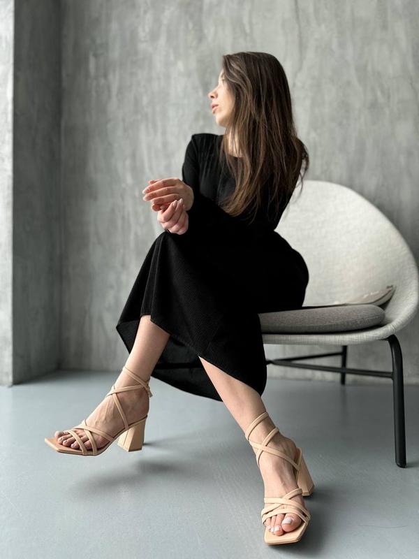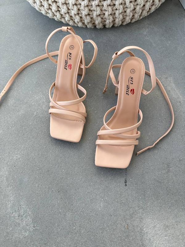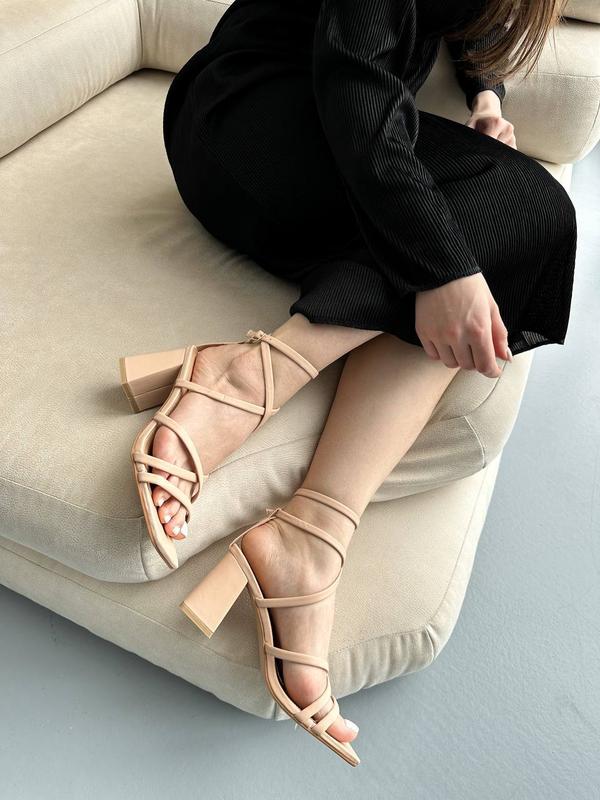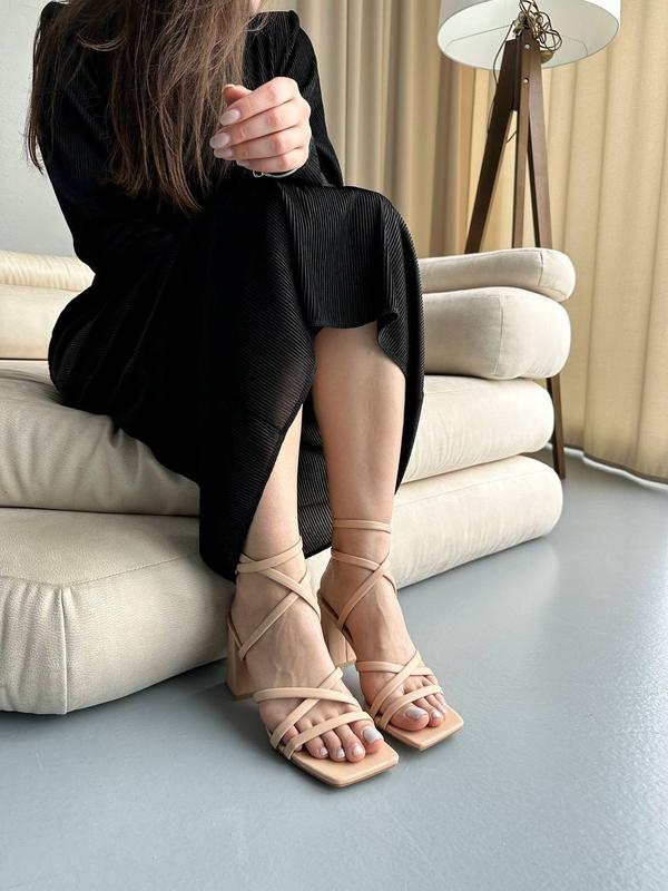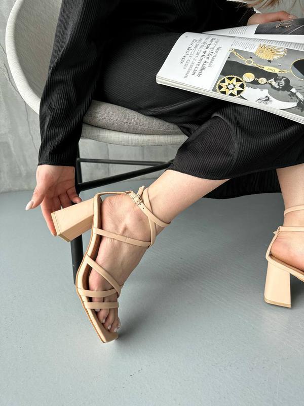 Стильні бежеві босоніжки на підборах на квадратному каблуку,жіноче взуття на літо 2023-2024