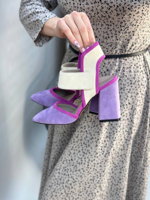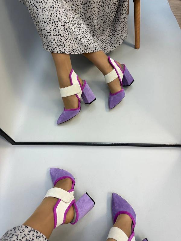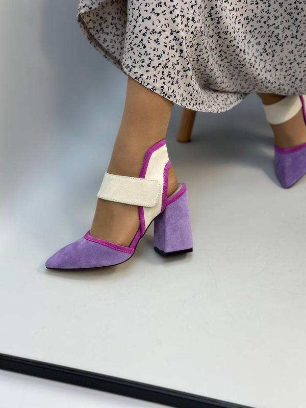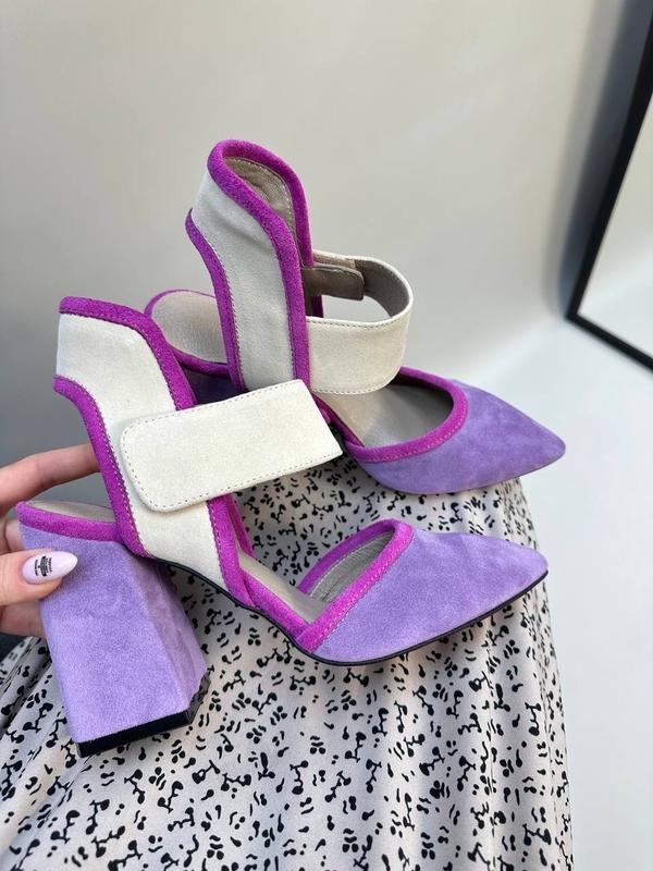 БосоніжкиНатуральна замша та шкіраВсередині натуральна шкіраВисота підборів 9 см (можна 6 см)