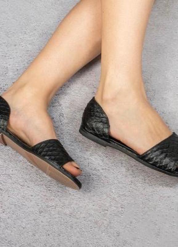 Красиві босоніжки, сандалі на плоскій підошві / балетки рептилія Loretta 🍎🍒🍓Матеріал верху - штучна шкіра.Розмір вказано 38 . Фактичний розмір 38,5-39 💥Довжина стельки 25,5 смВ наявності ж в трьох кольорах: бежевий, білий , чорний.