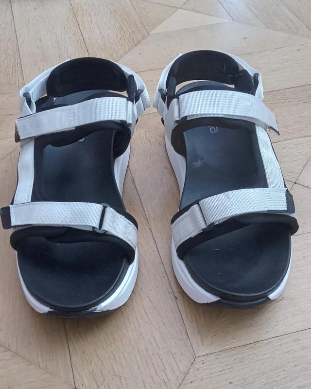 Дуже зручні сандалі. Під усіма ремінцями м'які вставки. Вдягалися одноразово. Стан ідеальний. Повний 39 розмір. 26 см устілка. Річ моя. На стопу 24, 5 мені завеликі