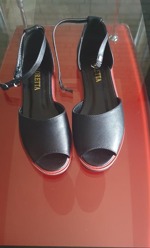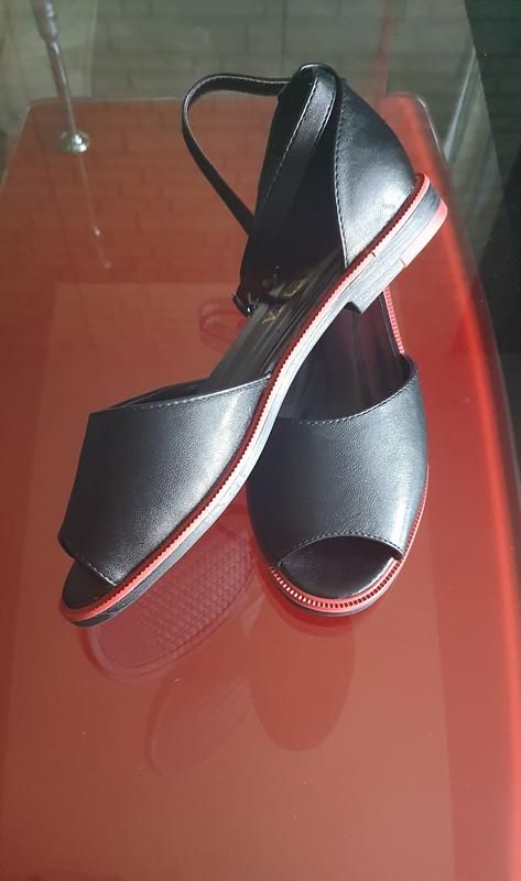 Стильні босоніжки в поєднанні двох кольорів червоного і чорного.На вузеньку ніжку.На застібці,є резиночка.Легко застібуються.Новенькі,не підійшли розміром.36 розмір.Устілка-24 см.