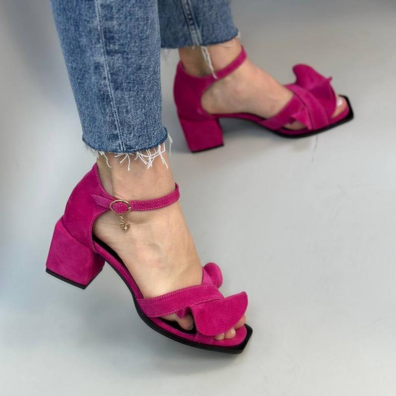 Ексклюзивні босоніжки з італійської шкіри та замші жіночі на підборах