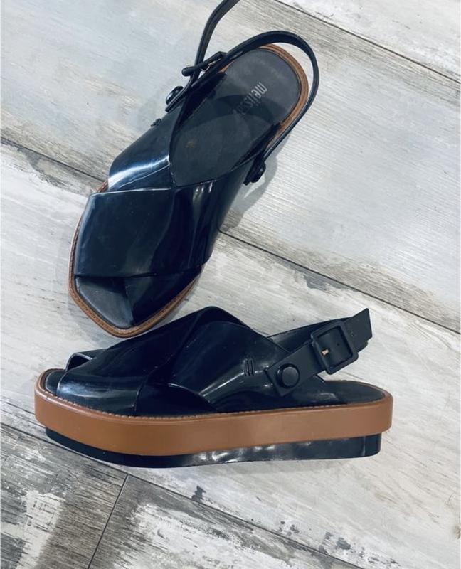 Жіночі стильні чорні босоніжки на масивній бежевій тракторній підошві