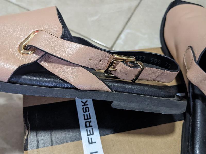 Повнота: 6 Матеріал: Верх-натур.шкіра, Підклад- gld натур.шкіра, Підошва-ПВХ Серт.: 12.2-18-1/24110 МОЗ України Виробник: т/м FERESKI. Розмір 39, устілка 24.0-24.5см. Оригінальні босоніжки, з натуральної шкіри, були у використанні декілька разів. Не підійшли по нозі. Для вузької ніжки. Оригінальна коробка зберіглася.