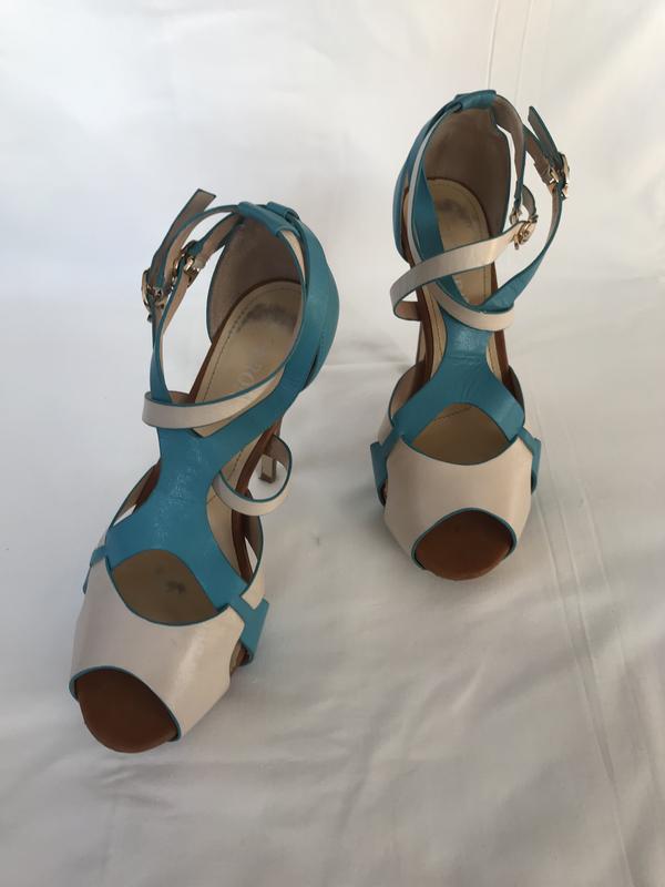 Шкіряні босоніжки на високих підборах. Висота підбору - 13см, висота платформи спереду - 3,5см. Розмір - 38.