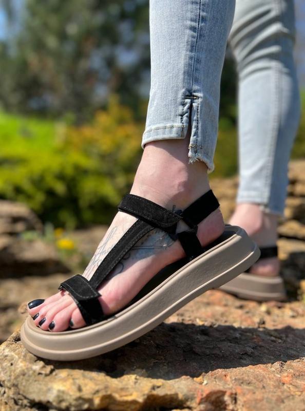 Босоніжки з НАТУРАЛЬНОЇ ЗАМШІ, якісні, стильні та зручні. Повномірні, йдуть в розмір. Додала власні фото, зроблені в живу.