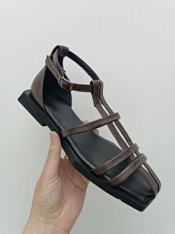 Сезон: літо Розміри: 36-41 Колір: коричневий Матеріал верху: натуральна шкіра Всередині: шкірпідкладка Матеріал підошви: поліуретан Висота підошви: 1-2см Виробник: Україна 36-23см 37-23,5-24см 38-24,5-25см 39-25,5см 40-26см 41-26,5см