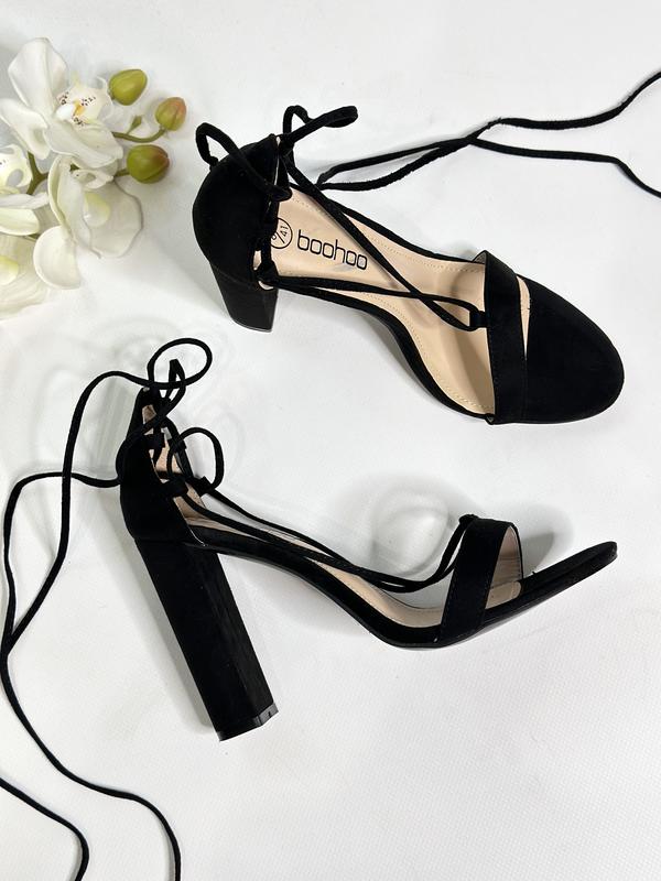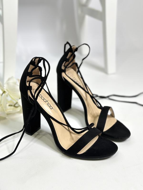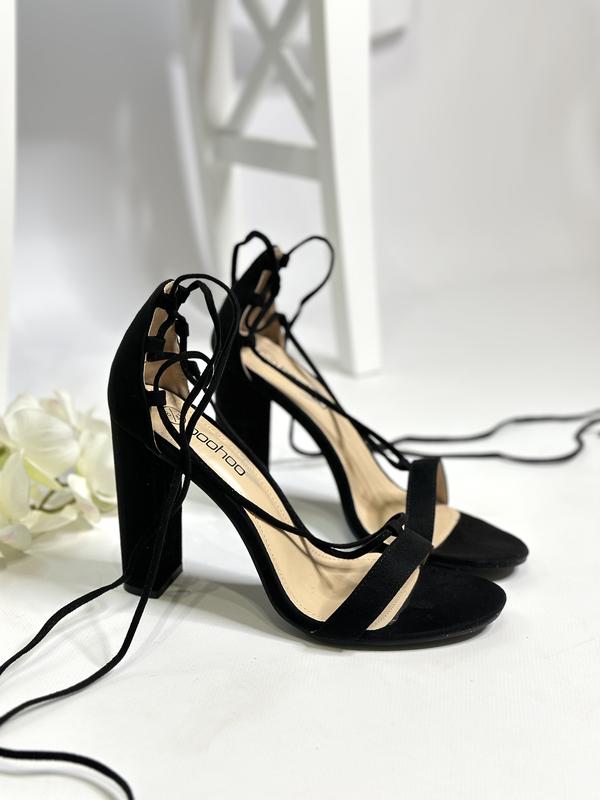 🔻розмір: вказаний: 40 🔻заміри: 👉. 26-26,5 см каблук - 11 см ширина устілки - 9 см 🔻стан: нові‼️трохи оптрьопана одна лямка ‼️, помітно у руках 🔻матер‘ял : еко замш🔻колір : чорні