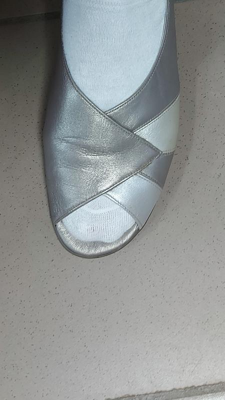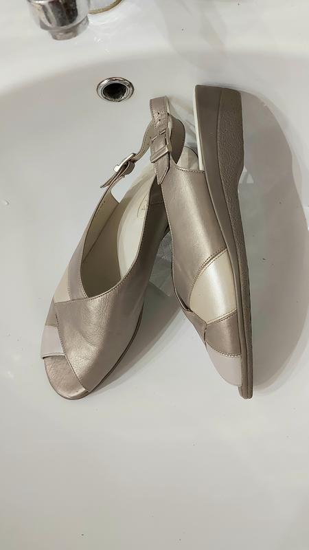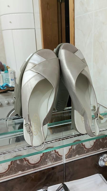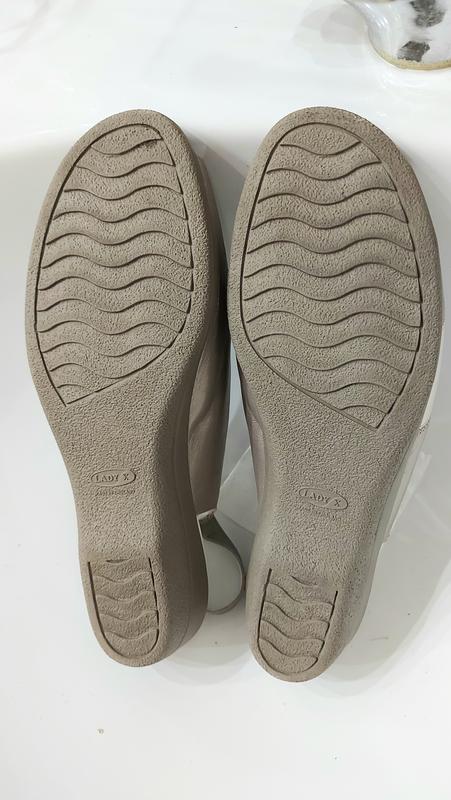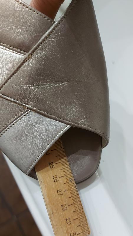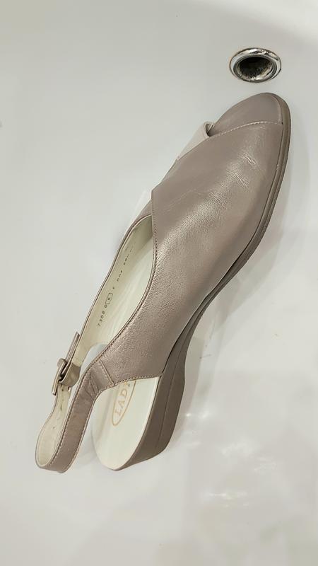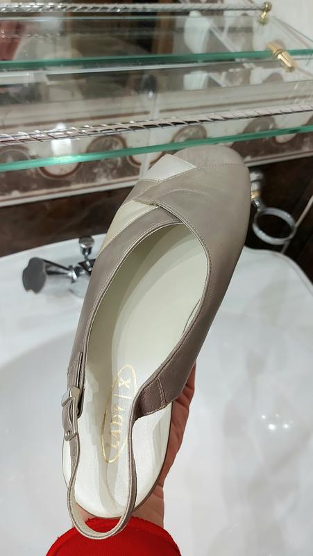 Устілка 26,5-27 см. Ширина 8,5 см. З натуральної м'якої якісної шкіри зверху та всередині. Зручно як у капцях. 3 см каблучок. Не для вузької ноги. Усередині є гумочка для тих, у кого високий підйом. Гарний нейтральний колір. Сіро-бежевий. Акція до 01.05.24