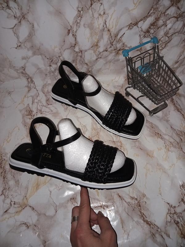Чорно-білі босоніжки із плетеним верхом дрібними косичками. Розмір-40, устілка-26см.