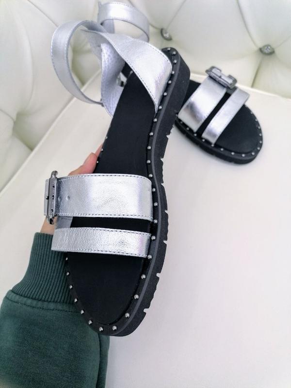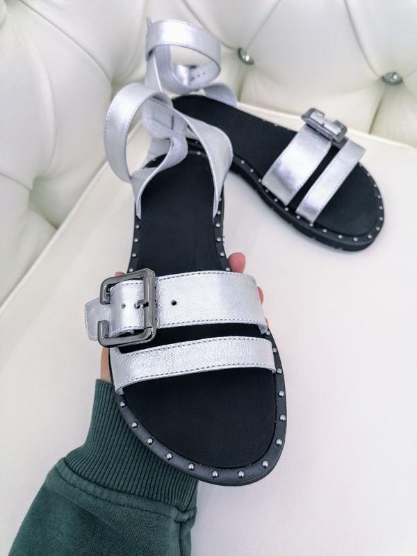 Шкіряні жіночі сандалі босоніжки сріблясті