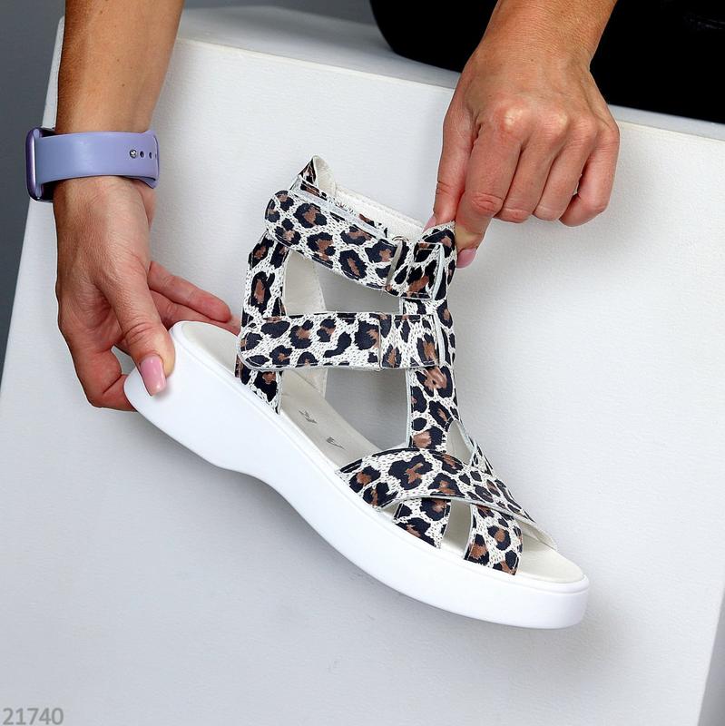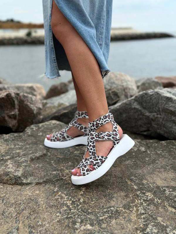 Ультра модні високі білі босоніжки на липучці натуральна шкіра леопард