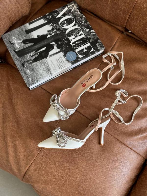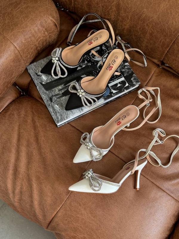 Туфлі білі з блискучими бантикамиМатеріал атлас Виробник Угорщина Є в двух колярах черні і білі.