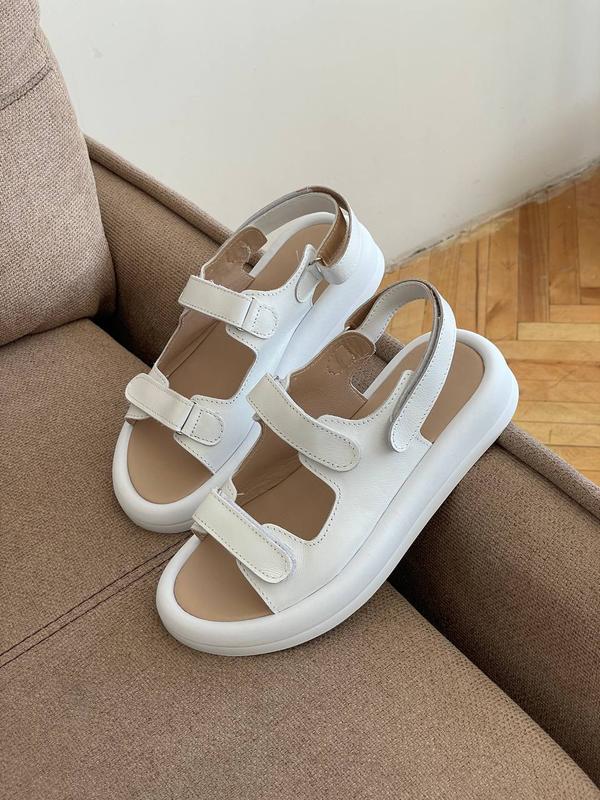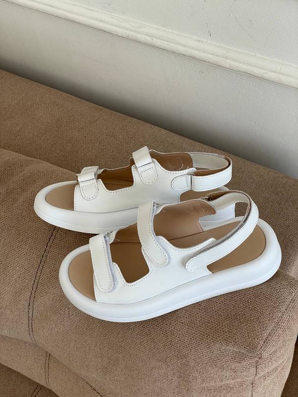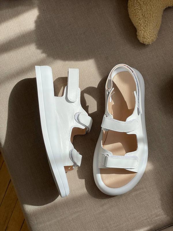 Білі босоніжки на 3 липучки з натуральної шкіри на білій підошвіПлатформа: 2-4 смна середню ніжку. Українське виробництворозмір в розмірРозмірна сітка36 - 23,5 см37 - 24 см 38 - 24,5 см 39 - 25 см 40 - 26 см