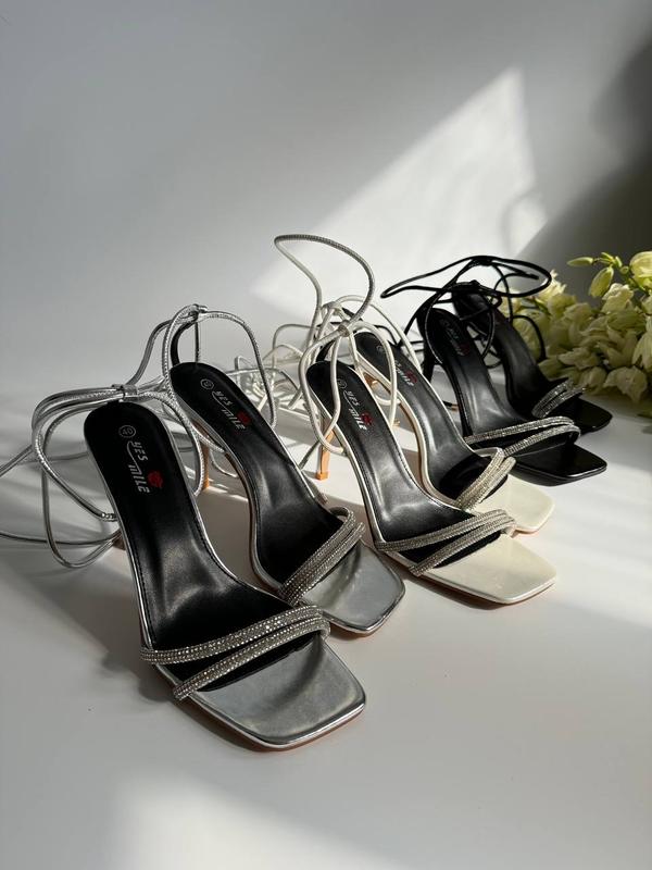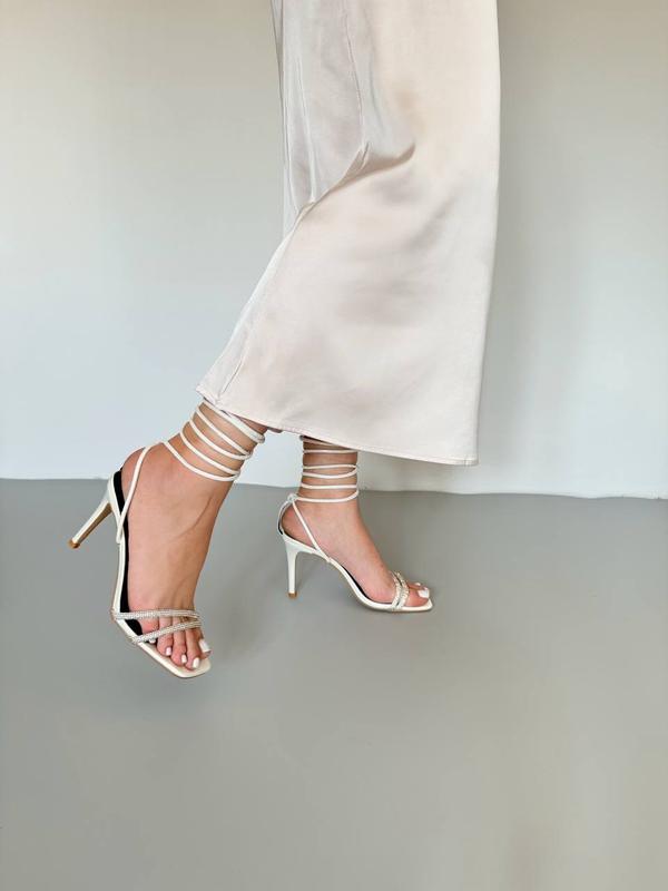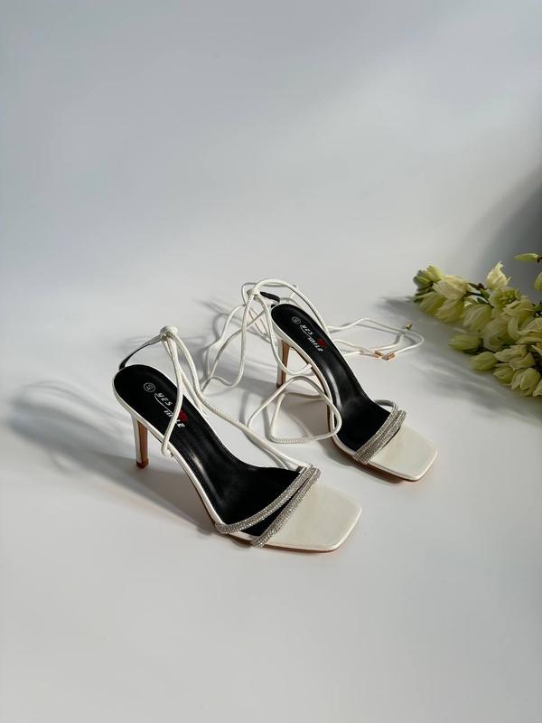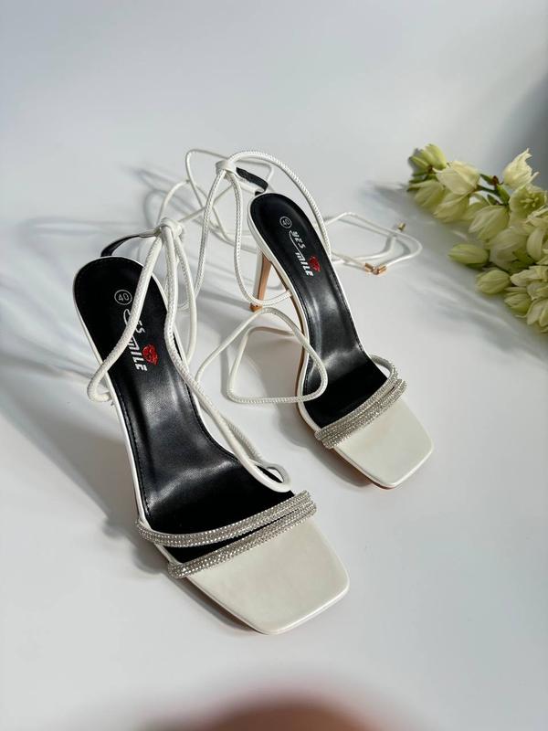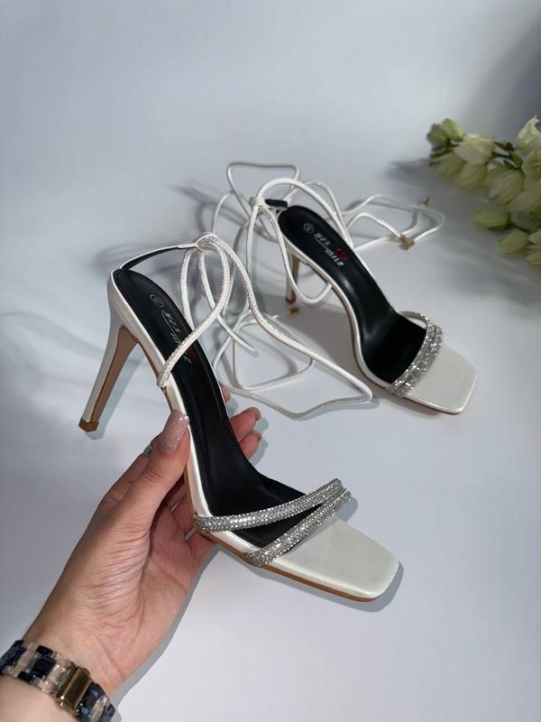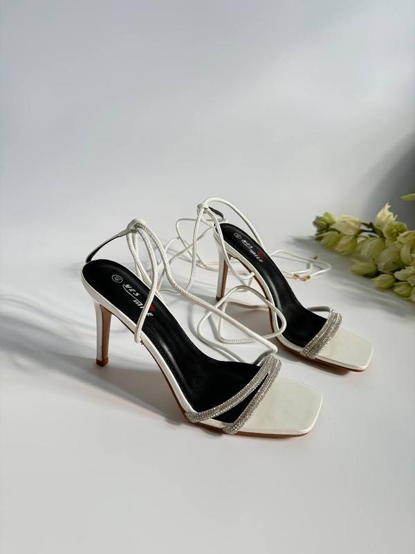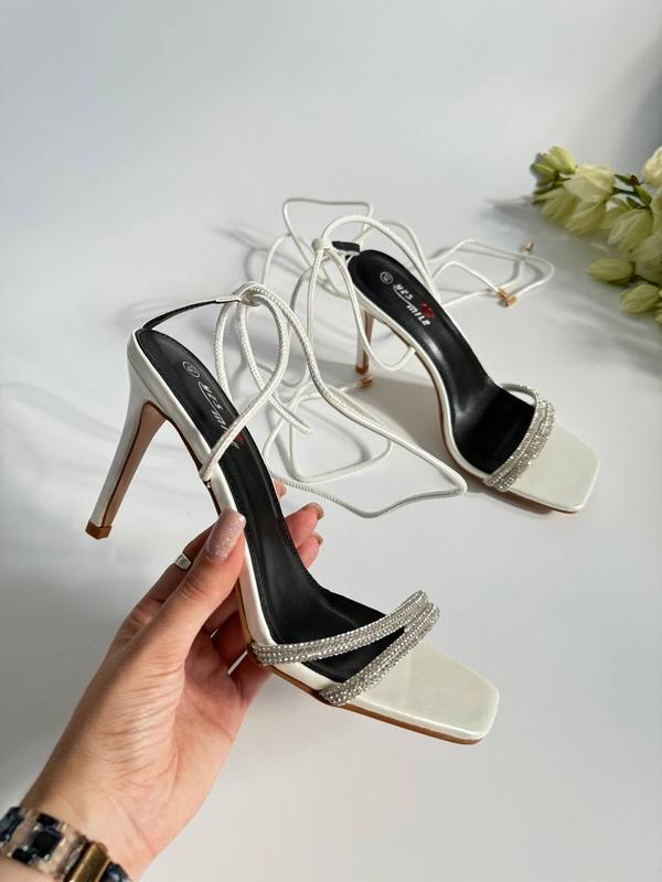 Новинка 😍Босоніжки с камінчиками Код 881Колір : білий Матеріал: еко шкіра Каблук 10,5 см 36-23 см 37-23,5 см 38-24 см 39-24,5 см 40-25,5 см 41-26 см