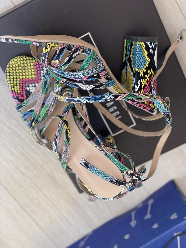 Красиві босоніжки на каблуку ,защіпаються зверху по нозі ,можна також завʼязувати ,йдуть 37 розмір але на вузьку ніжку ,можливо краще будуть на 36 В гарному стані