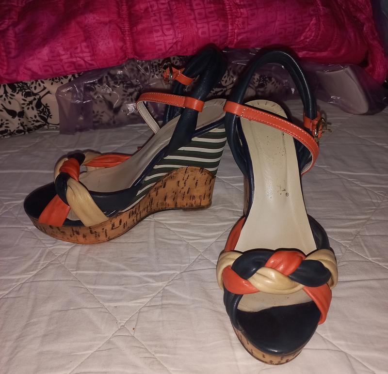 Босоножки в отличном состоянии. Идут на маленькую узкую ножку.Натуральная кожа.Mariposa фирма.Босоножки 36 размер, 23 см стелька.Платформа 12 см.Спереди 3,7 см где-то.Без торга.