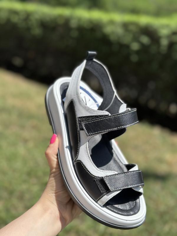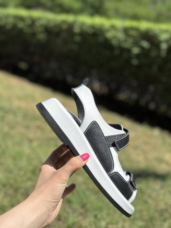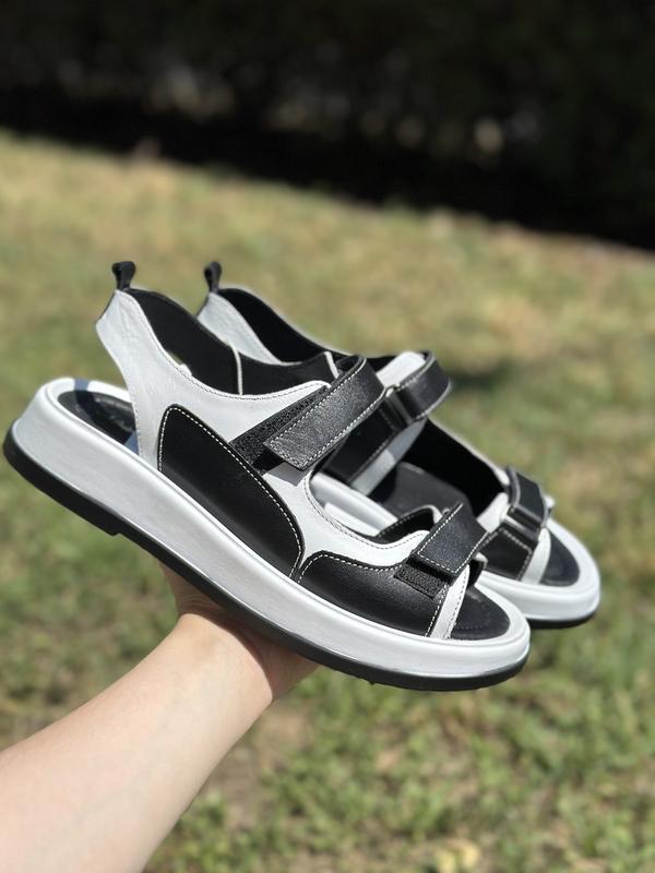Стильні жіночі чорні-білі сандалі з натуральної шкіри