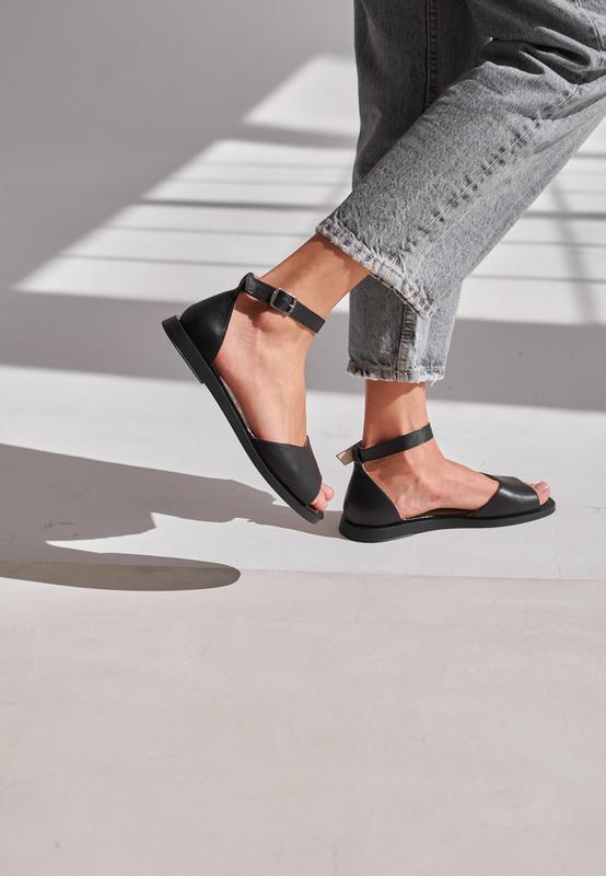 Чорні шкіряні босоніжки ідеально поєднуються як з повсякденним, так і з