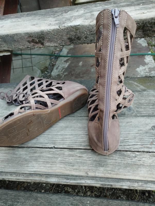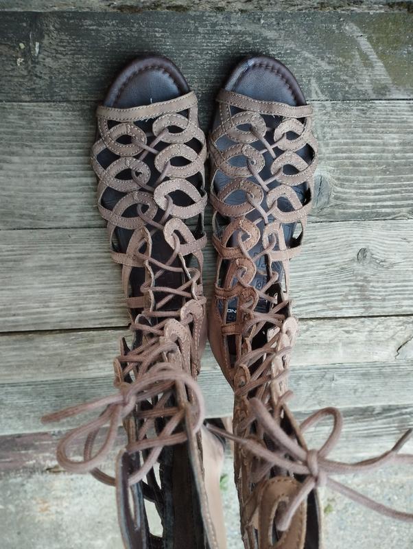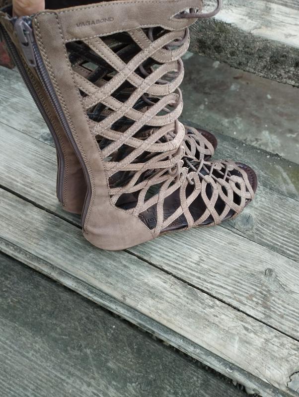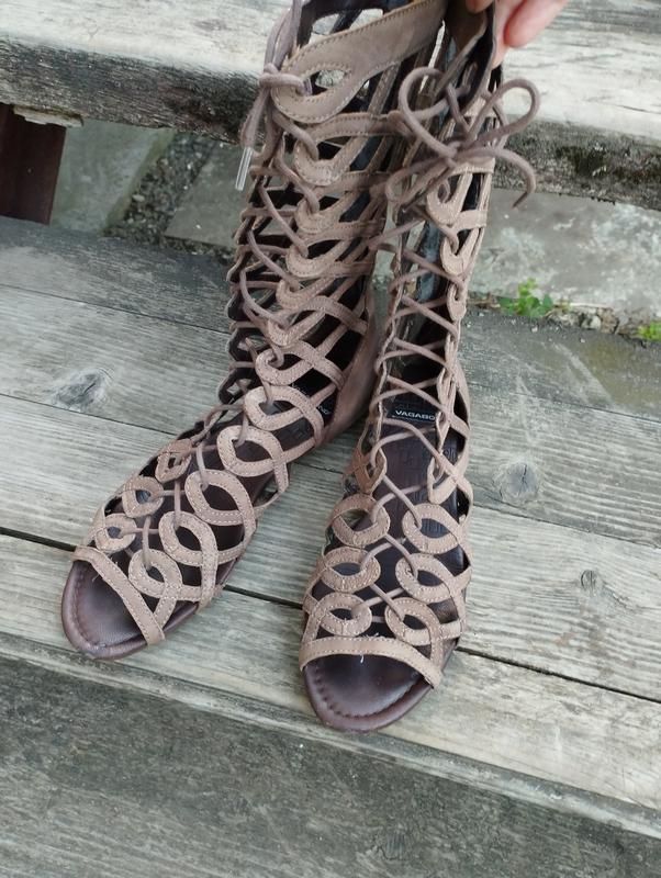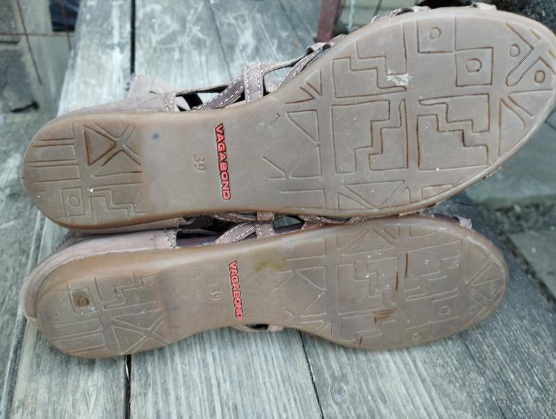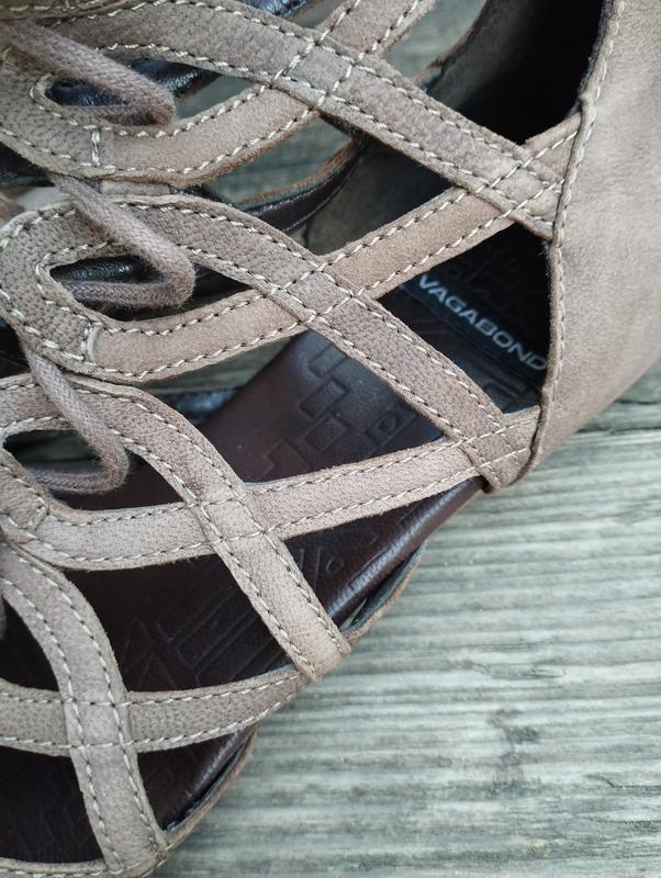 Красиві стильні шкіряні босоніжки бренда Vagabond на замку ззаду та на шнурку спереду, що дає змогу регулювати ширину. Стійкі, добре тримають ногу. Підошва зручна. Підійдуть на 39 і 40 розмір. У мене довжина ступні 26 см, мені нормально.
