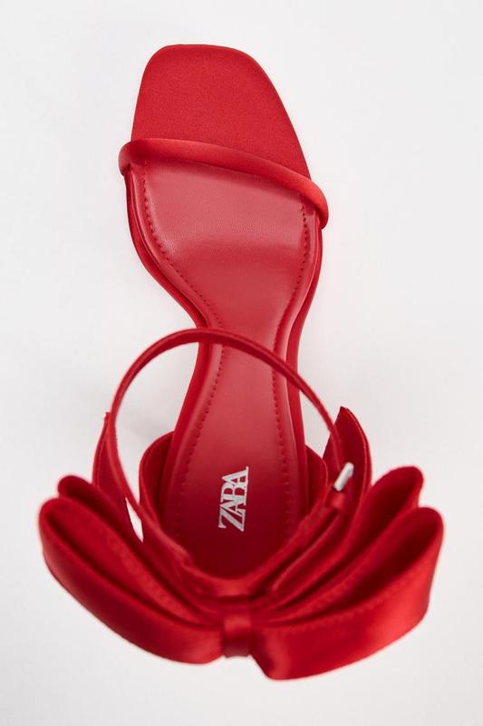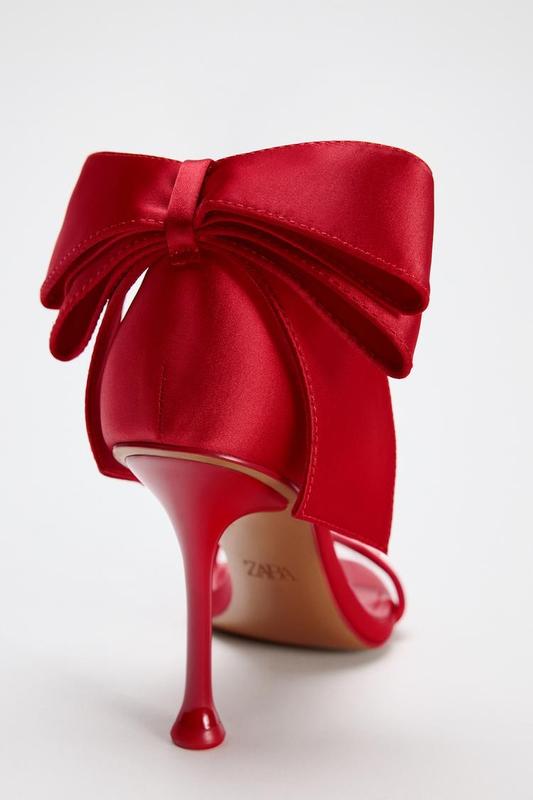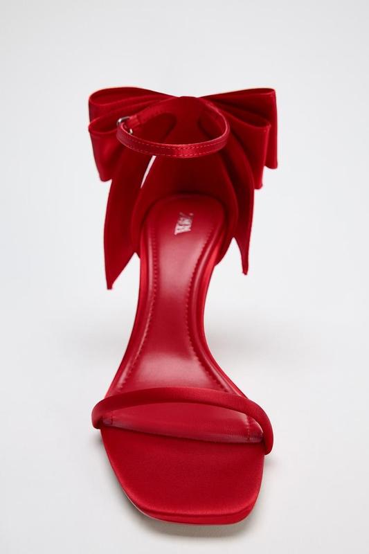Атласні туфлі з ефектом атласу. Великий бант ззаду. Тонкий ремінець спереду. Ремінець із пряжкою для регулювання щиколотки.